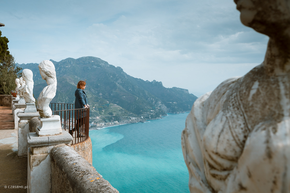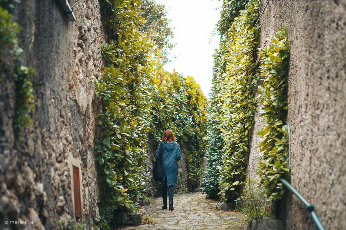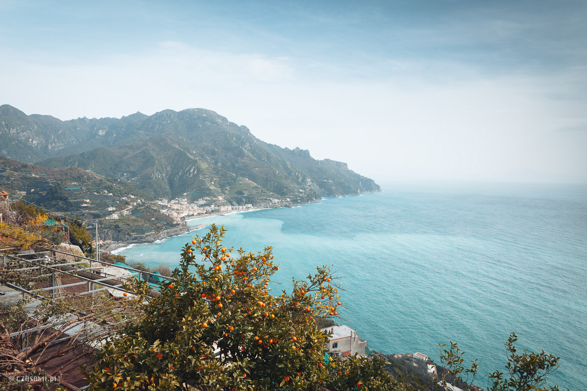 Ogrody Rufolo, znajdują się w miejscowości Ravello. Jak by nie kombinować i gdzie by nie parkować auta i tak trzeba tam podreptać na piechotę pod górę. Myśmy całkiem przypadkiem wybrali dłuższą drogę, ale widokowo całkiem ciekawą. Spacer między uprawami cytryn i pomarańczy.