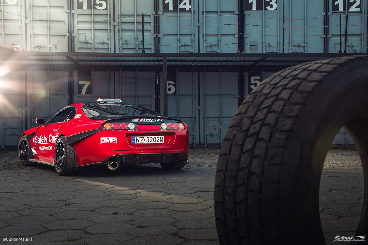 Dzisiaj dla odmiany post zaczynam zdjęciem. Myślę, że to auto czekające do jazdy jest wystarczającym wstępem :) Mam przyjemność przedstawić Wam Toyotę Suprę z kompletnym body kitem ANACONDA od STW. I jak to anakonda, gdy już Was złapie, nie wypuści Was łatwo ze swojego uścisku pasów. W sumie to sami nie będziecie chcieli żeby Was wypuściła. Pewnie nie jedno z Was specjalnie dałoby się złapać. Uwielbiam to auto, wstawki z włókna węglowego, maskę i dach w czarnym kolorze z czerwonymi drobinkami. Całość robi niesamowite wrażenie, na żywo jeszcze większe niż na zdjęciach. Można ją spotkać w jej środowisku naturalnym, czyli jako Safety Car na Driftingowych Mistrzostwach Polski. Ja razem z ekipą no limits photo team, dzięki uprzejmości Adam Fijał i Marek Wartałowicz , mieliśmy okazję trochę poprzebywać w jej towarzystwie na terenie STW Center, za co w tym miejscu pragnę podziękować.