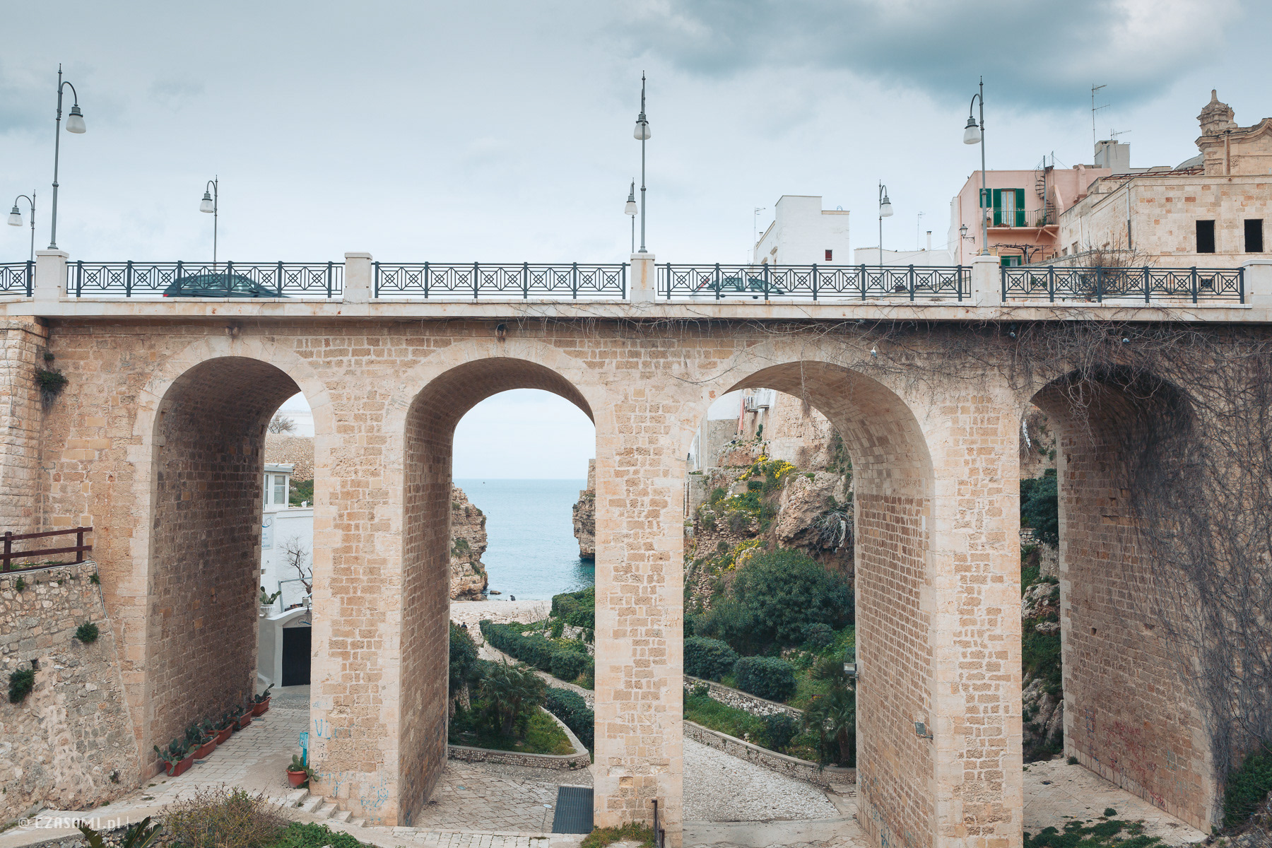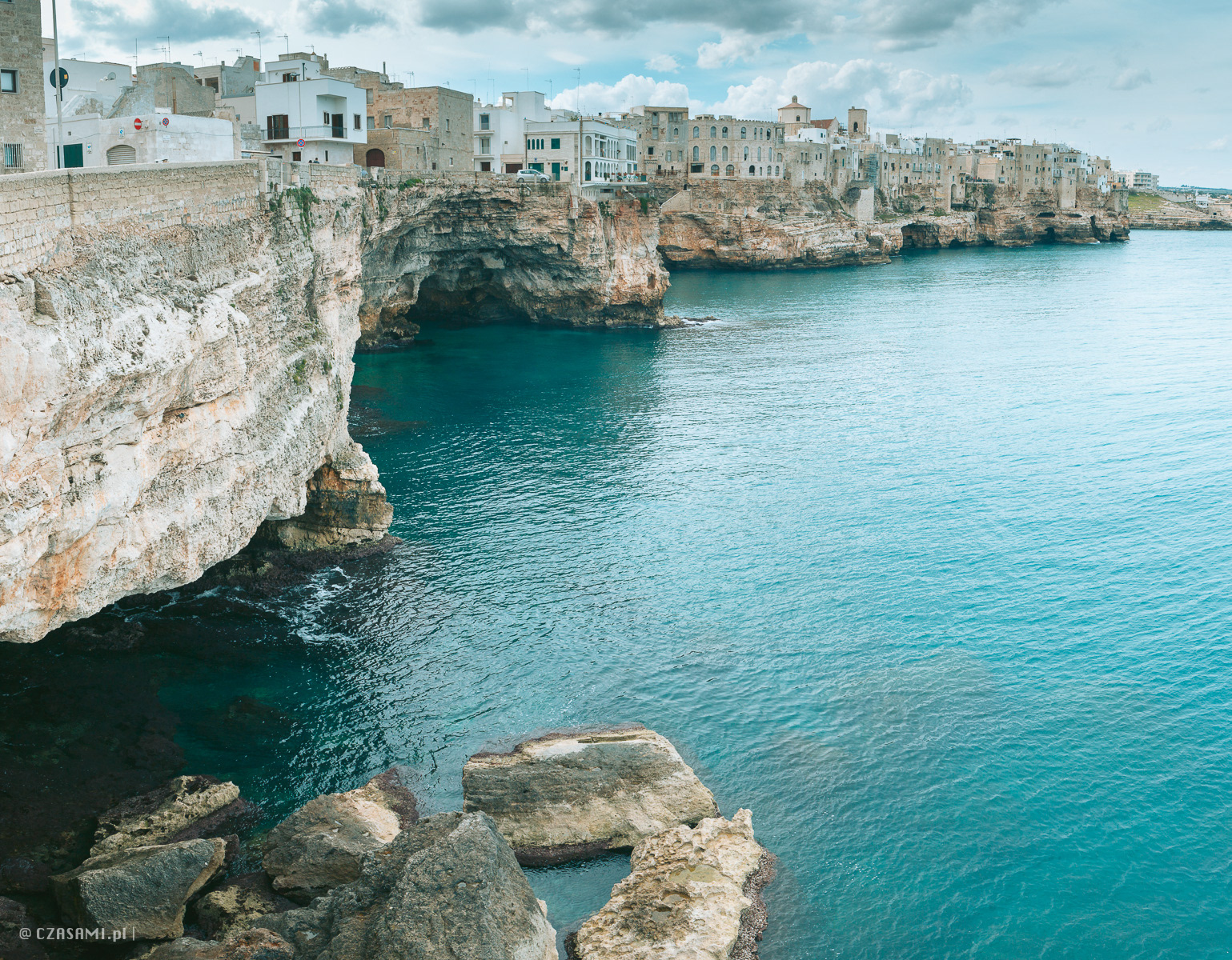 Trasa minęła mi zadziwiająco szybko, autostrada prosta i płaska jak stół. Włosi jak to Włosi mają swój własny styl prowadzenia auta, ale gdy już załapiemy o co w nim chodzi to nagle wszystko staje się zrozumiałe i płynne. Polignano A Mare, miejscowość zdecydowanie większa niż Minori, ale na spokojnie można przespacerować całość i zbytnio się nie zmęczyć. Temperatura trafiła nam się koło 20 stopni, także jak dla mnie odpowiednia do łażenia i nie lepienia się po chwili. Miasteczko jest gęsto usiane uliczkami, także zachęca do eksploracji. Główną plażę można obserwować z różnych stron i wysokości, co też skrupulatnie zamierzaliśmy wykonać.