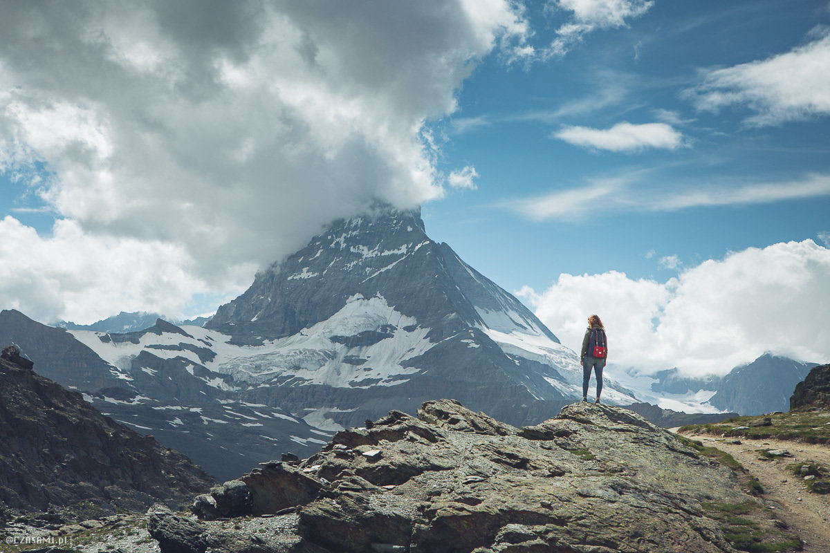 Następnym etapem w podróży do Matterhorn jest zdecydowanie, z której strony chcemy go oglądać. Myśmy zdecydowali się na dostanie się do jeziora Riffelsee. W tym celu można iść pod górę szlakami, lub też wjechać pociągiem co też uczyniliśmy. Jako stacje końcową wybraliśmy Rotenboden i to było ostatnie ułatwienie jakie wybraliśmy tego dnia. Resztę drogi do auta pokonaliśmy już na piechotę. Około 10km.
